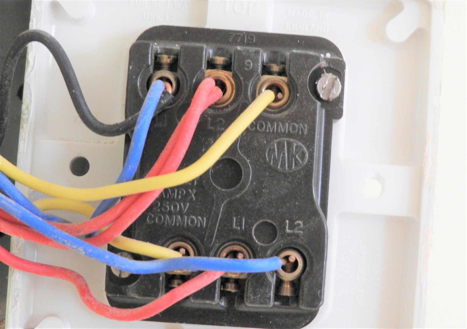 We run another wire from the common terminal of switch 2 and connect this to the lamp. Two way switching is the most common requirement for many household and commercial lighting solutions. Explanation and diagrams for wiring two way lighting circuits using three core cable, junction boxes, connecting a ceiling rose and wiring metal switches. A common mistake is expecting the top and bottom rows of terminals of switches like your old one to correspond to the two switch units, but they . In this project we have been talking about plate switches which are the most common types of light switch that are used in peoples homes. Whether it is the switching of a light from two . It will have one terminal in and 2 terminals out. Once again the varied knowledge and experience of the uk climbing. The common is for the live wire that supplies the input voltage to the switch . Each terminal on a spdt switch has a name. A one way light switch has two terminals which is a common marked as com or c. A two way light switch is a simple single pole changeover . Different types and configurations of wall mounted light switches as used in the uk.